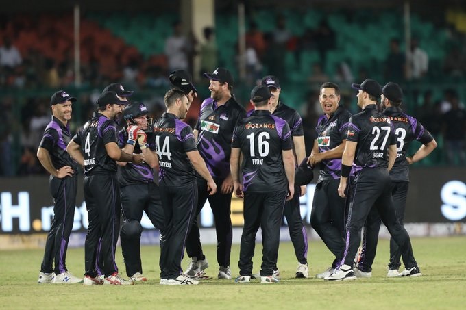 New Zealand Legends: Anton Devcich, Ross Taylor (c), Neil Broom, Dean Brownlie, Craig McMillan, Aaron Redmond, Gareth Hopkins (wk), Jacob Oram, Shane Bond, Bruce Martin, Hamish Bennett